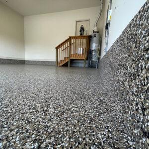 Customize your garage with eye-catching, durable decorative flakes, available in various colors and textures, enhancing both style and slip resistance.